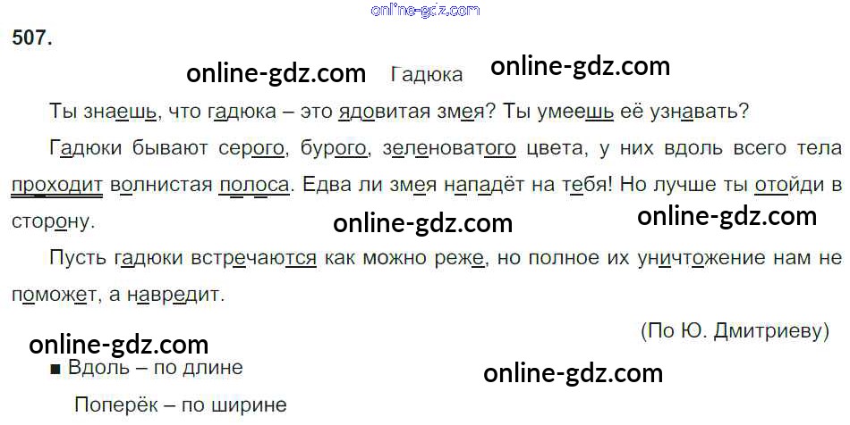 Готовые домашние задания по Русскому языку за 4 класс Учебник Соловейчик, Кузьменко Гармония 2015 - Часть 2. Упражнения 507