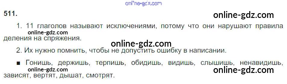Готовые домашние задания по Русскому языку за 4 класс Учебник Соловейчик, Кузьменко Гармония 2015 - Часть 2. Упражнения 511