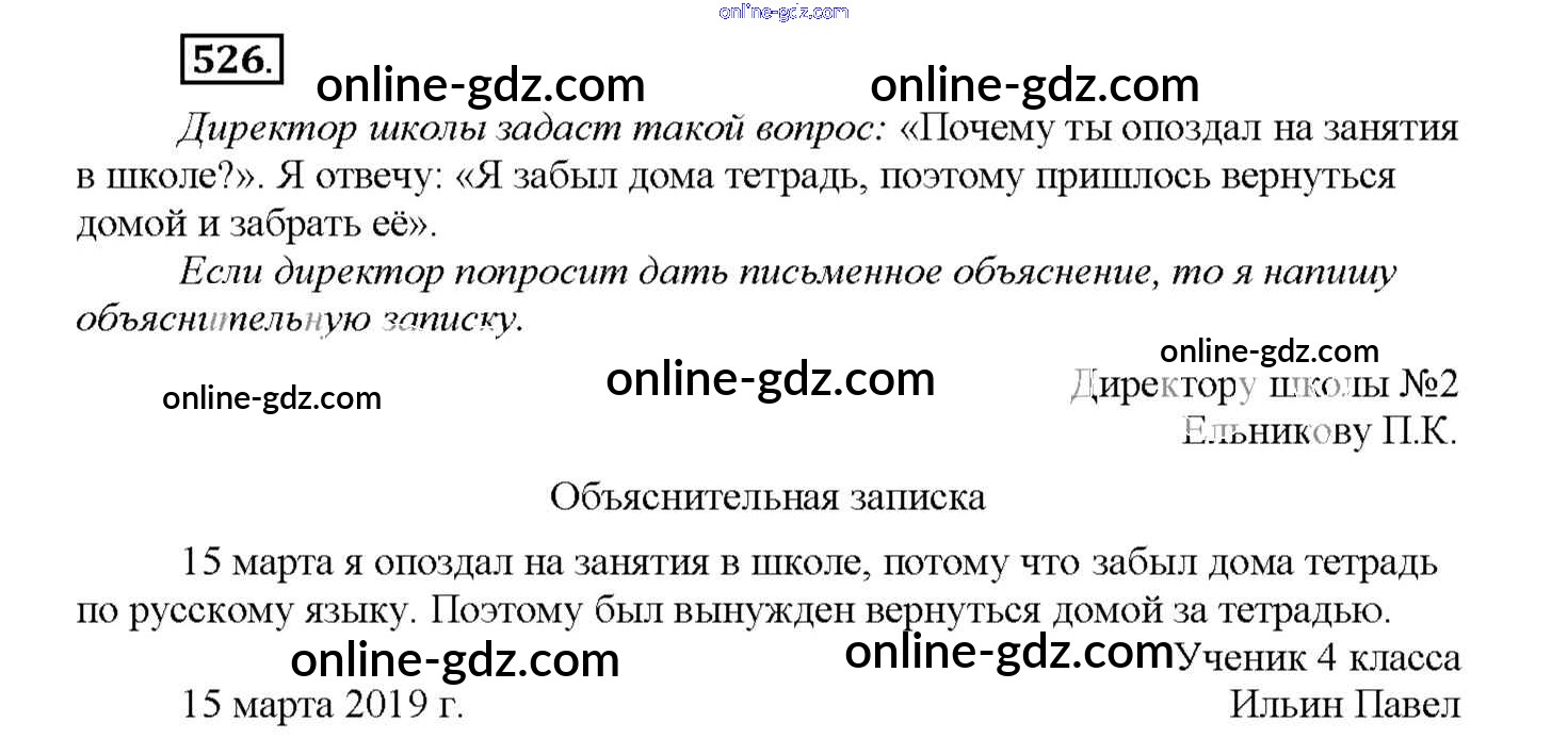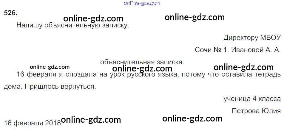 Готовые домашние задания по Русскому языку за 4 класс Учебник Соловейчик, Кузьменко Гармония 2015 - Часть 2. Упражнения 526