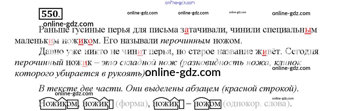 Готовые домашние задания по Русскому языку за 4 класс Учебник Соловейчик, Кузьменко Гармония 2015 - Часть 2. Упражнения 550