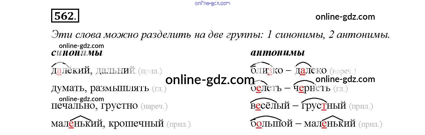 Готовые домашние задания по Русскому языку за 4 класс Учебник Соловейчик, Кузьменко Гармония 2015 - Часть 2. Упражнения 562