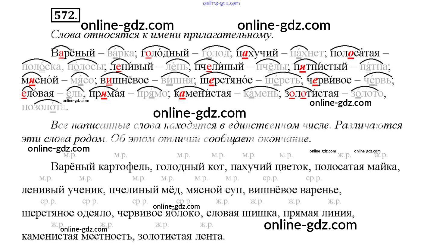 Готовые домашние задания по Русскому языку за 4 класс Учебник Соловейчик, Кузьменко Гармония 2015 - Часть 2. Упражнения 572