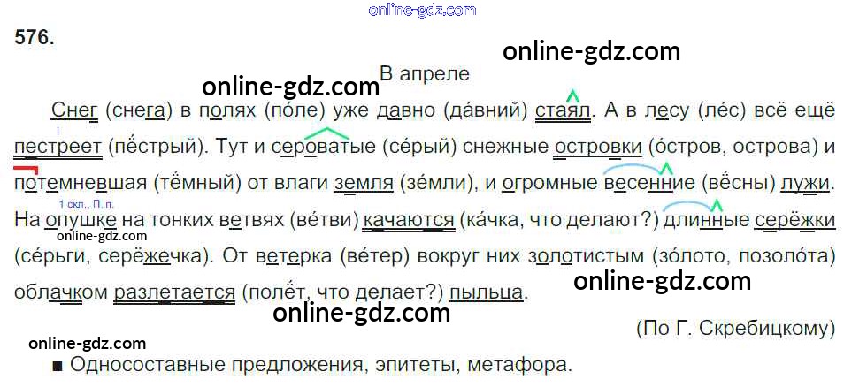 Готовые домашние задания по Русскому языку за 4 класс Учебник Соловейчик, Кузьменко Гармония 2015 - Часть 2. Упражнения 576