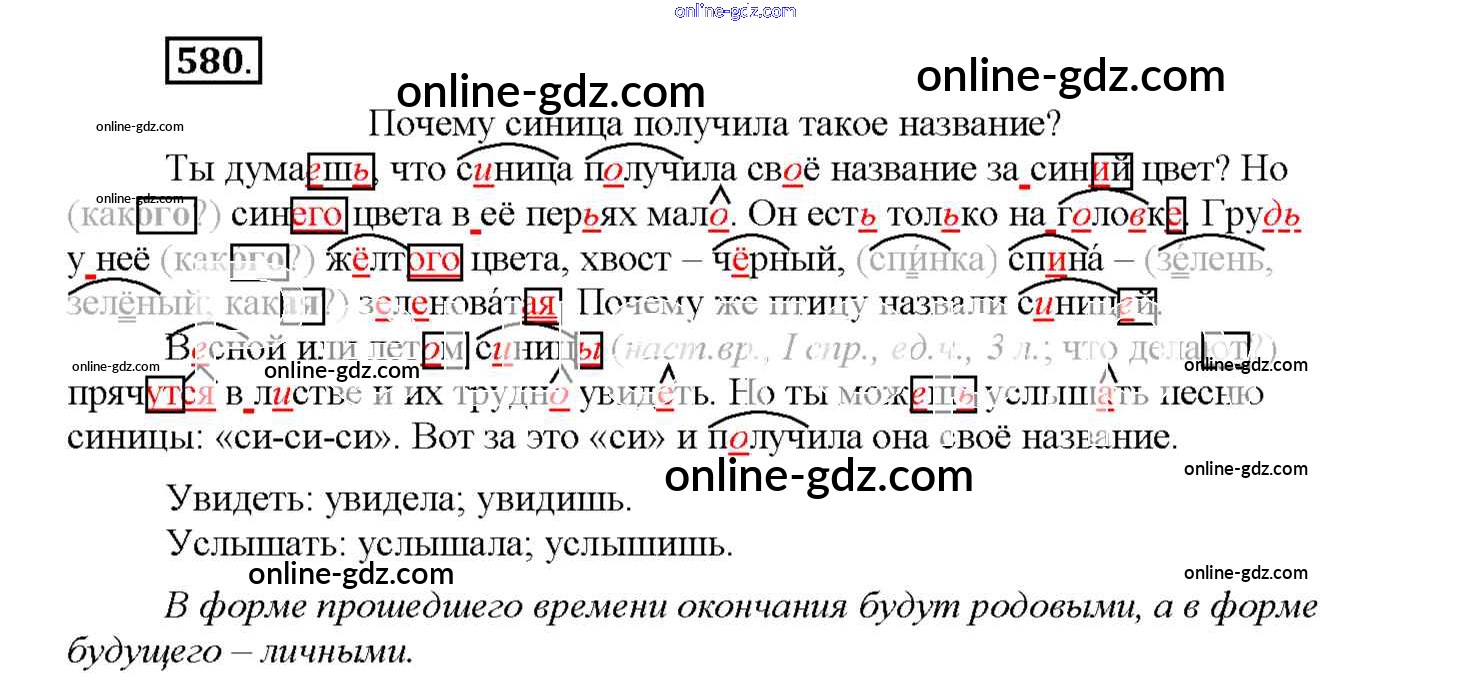 Готовые домашние задания по Русскому языку за 4 класс Учебник Соловейчик, Кузьменко Гармония 2015 - Часть 2. Упражнения 580