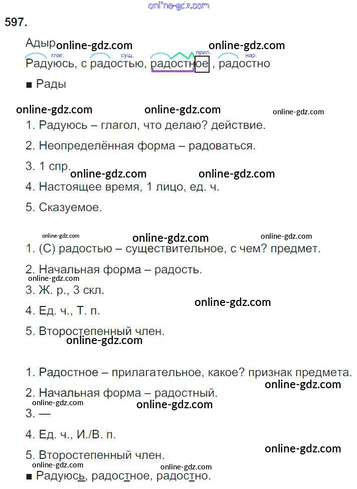 Готовые домашние задания по Русскому языку за 4 класс Учебник Соловейчик, Кузьменко Гармония 2015 - Часть 2. Упражнения 597