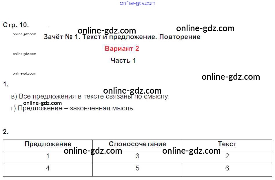 Готовые домашние задания по Русскому языку за 4 класс Зачётные работы Алимпиева, Векшина УМК 2016 - Часть 1. Страницы 10