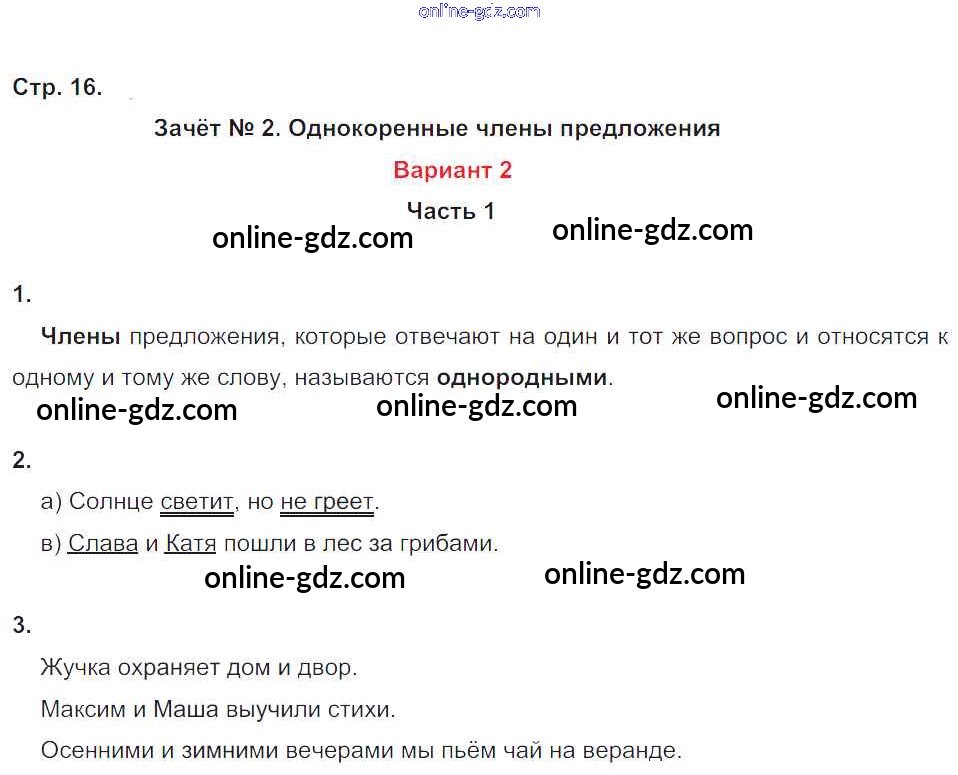 Готовые домашние задания по Русскому языку за 4 класс Зачётные работы Алимпиева, Векшина УМК 2016 - Часть 1. Страницы 16