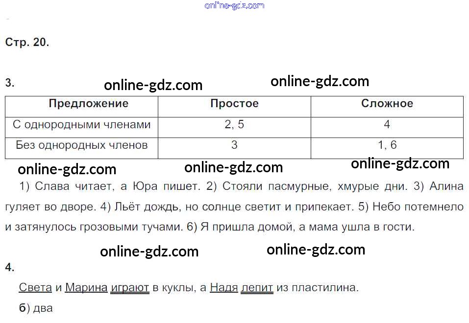 Готовые домашние задания по Русскому языку за 4 класс Зачётные работы Алимпиева, Векшина УМК 2016 - Часть 1. Страницы 20