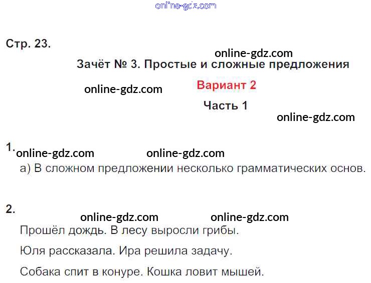 Готовые домашние задания по Русскому языку за 4 класс Зачётные работы Алимпиева, Векшина УМК 2016 - Часть 1. Страницы 23