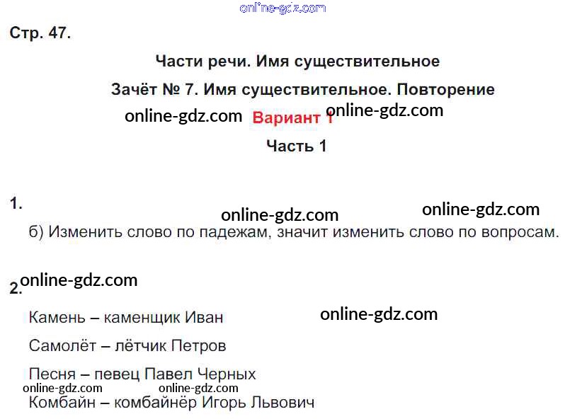 Готовые домашние задания по Русскому языку за 4 класс Зачётные работы Алимпиева, Векшина УМК 2016 - Часть 1. Страницы 47
