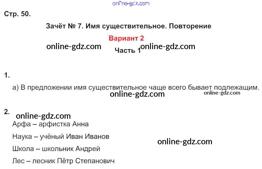 Готовые домашние задания по Русскому языку за 4 класс Зачётные работы Алимпиева, Векшина УМК 2016 - Часть 1. Страницы 50