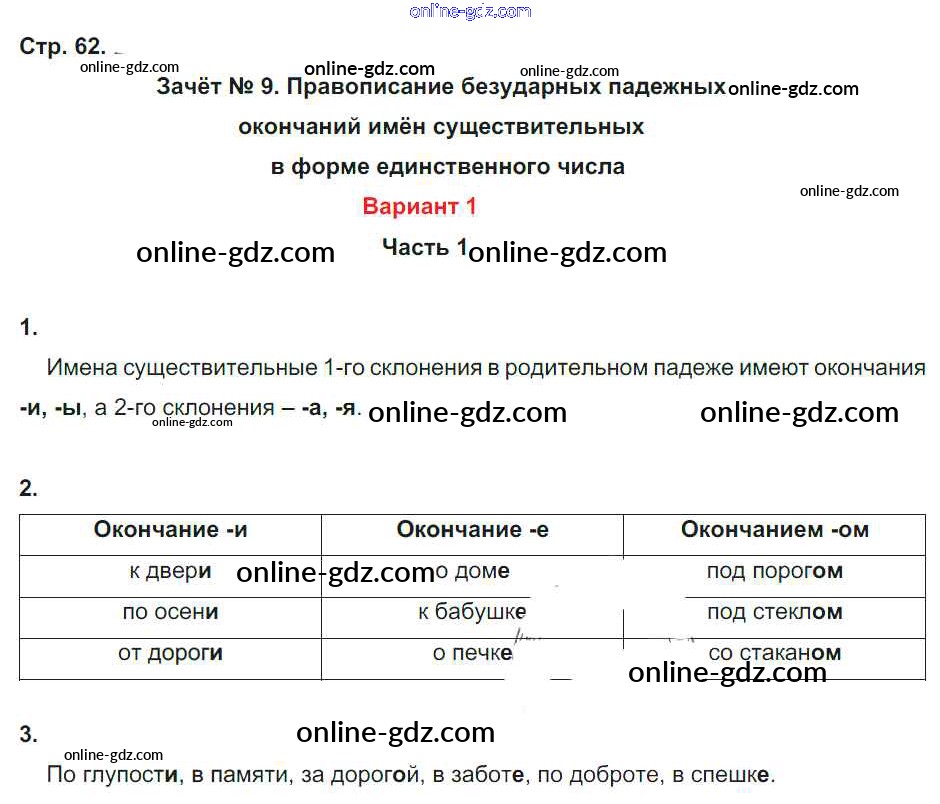 Готовые домашние задания по Русскому языку за 4 класс Зачётные работы Алимпиева, Векшина УМК 2016 - Часть 1. Страницы 62