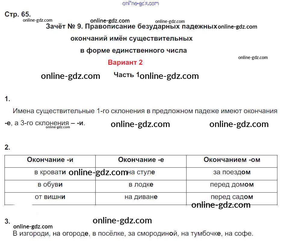 Готовые домашние задания по Русскому языку за 4 класс Зачётные работы Алимпиева, Векшина УМК 2016 - Часть 1. Страницы 65