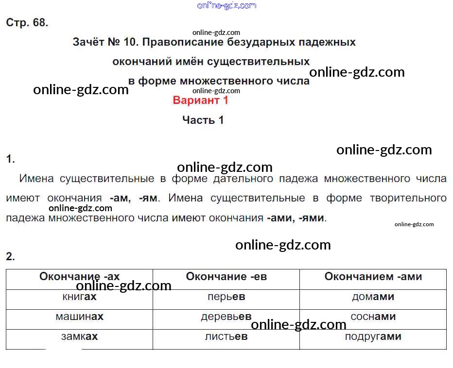 Готовые домашние задания по Русскому языку за 4 класс Зачётные работы Алимпиева, Векшина УМК 2016 - Часть 1. Страницы 68