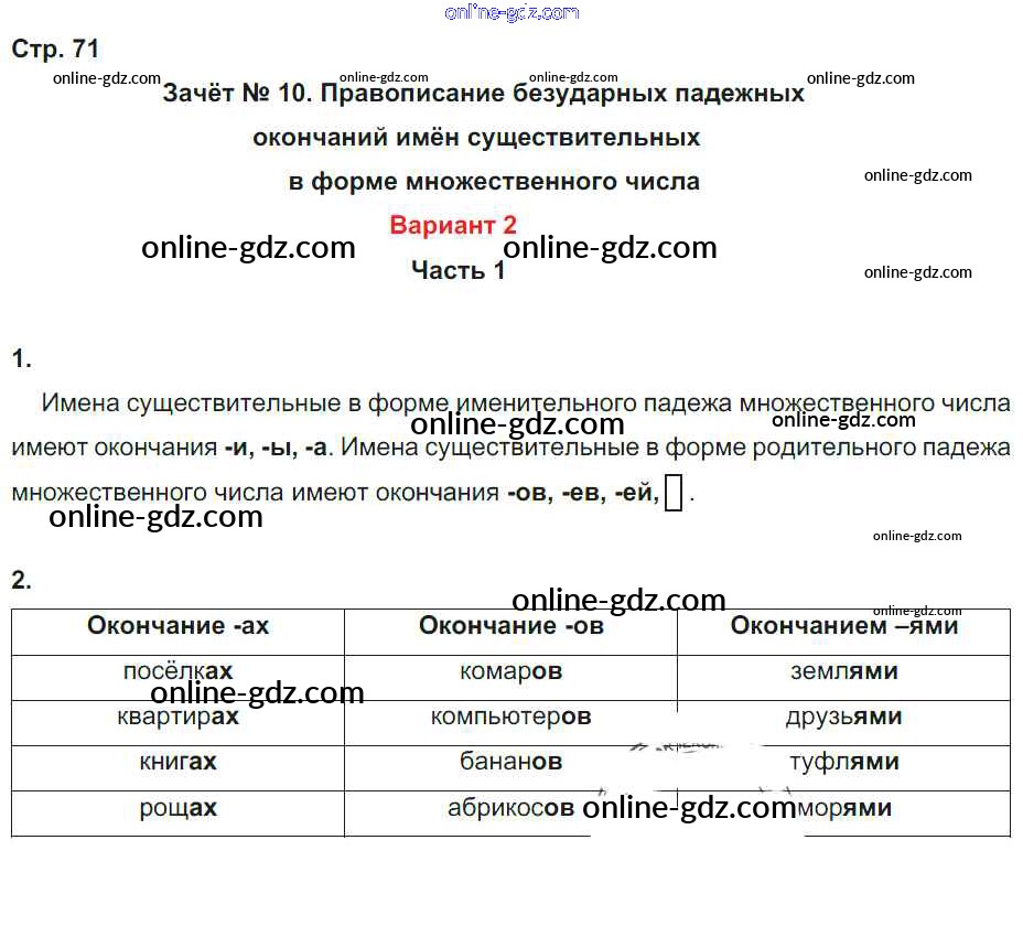Готовые домашние задания по Русскому языку за 4 класс Зачётные работы Алимпиева, Векшина УМК 2016 - Часть 1. Страницы 71