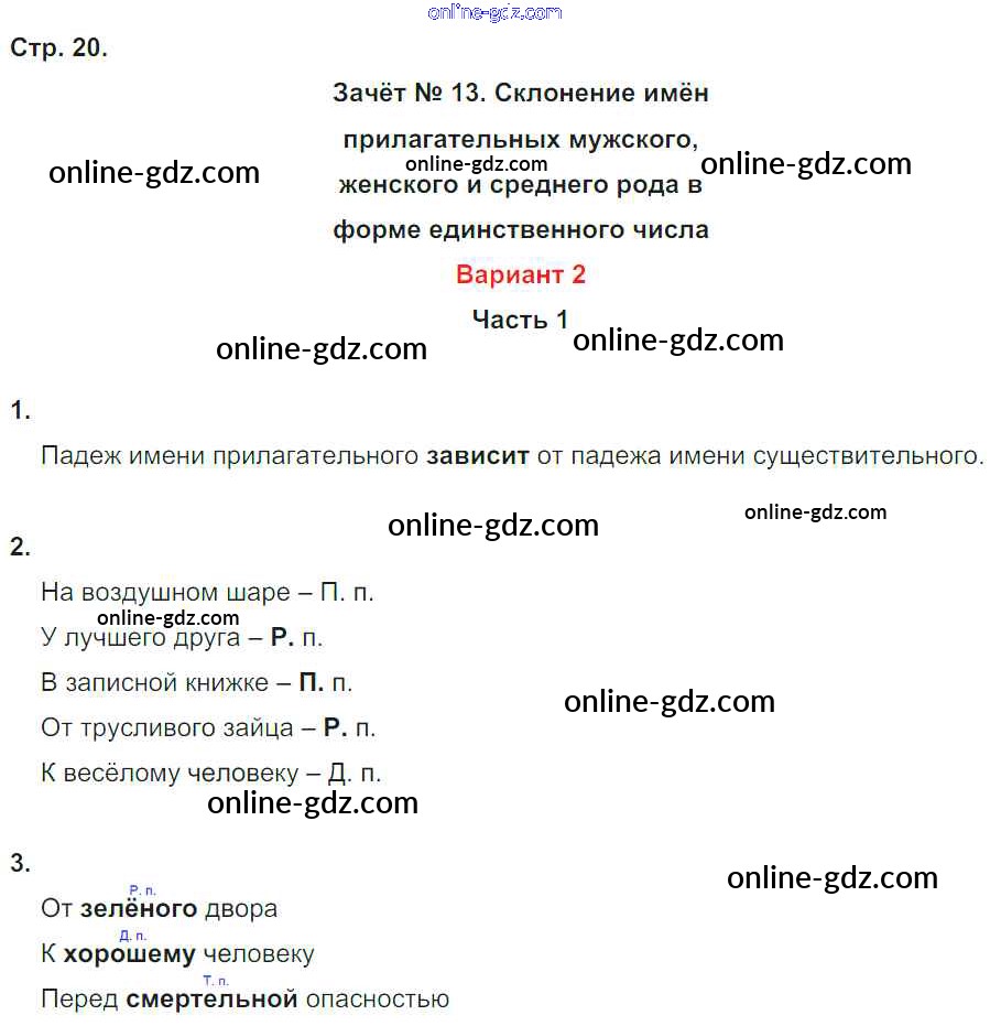 Готовые домашние задания по Русскому языку за 4 класс Зачётные работы Алимпиева, Векшина УМК 2016 - Часть 2. Страницы 20