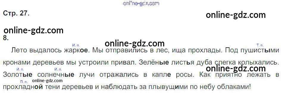 Готовые домашние задания по Русскому языку за 4 класс Зачётные работы Алимпиева, Векшина УМК 2016 - Часть 2. Страницы 27