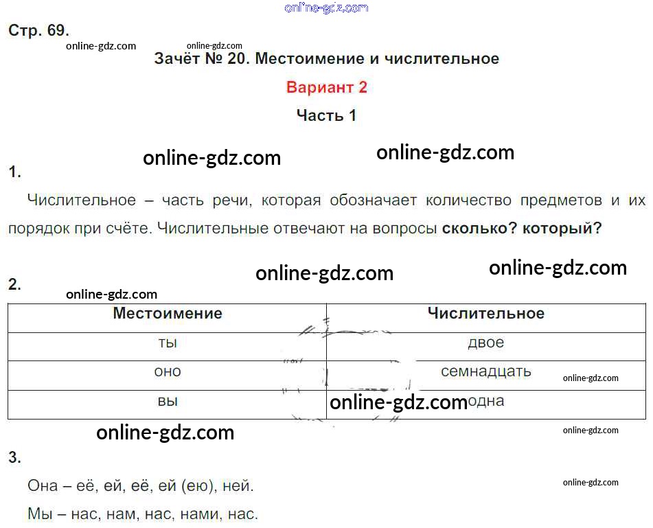 Готовые домашние задания по Русскому языку за 4 класс Зачётные работы Алимпиева, Векшина УМК 2016 - Часть 2. Страницы 69