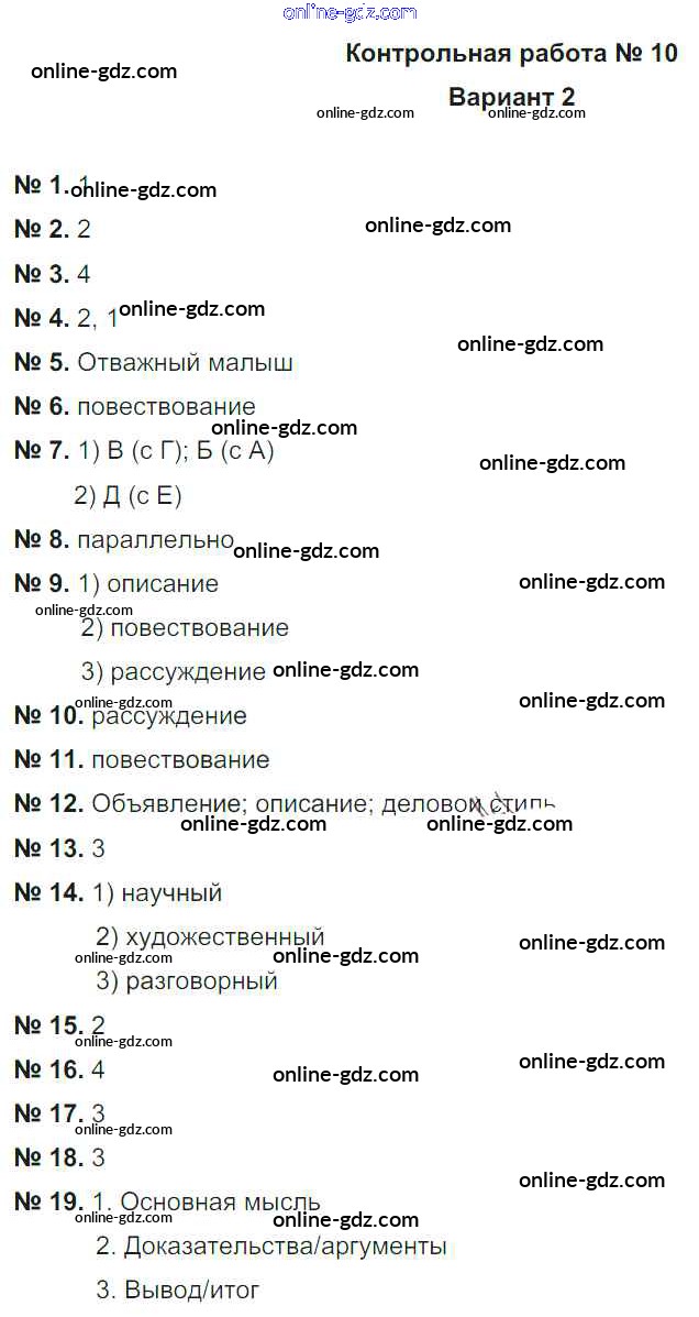 Готовые домашние задания по Русскому языку за 5 класс Рабочая тетрадь Гулеватая, Соловьева 2019 - КР-10. Варианты Контрольные работы 2