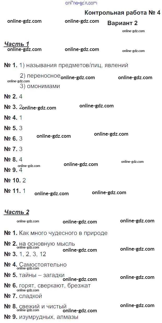Готовые домашние задания по Русскому языку за 5 класс Рабочая тетрадь Гулеватая, Соловьева 2019 - КР-4. Варианты Контрольные работы 2