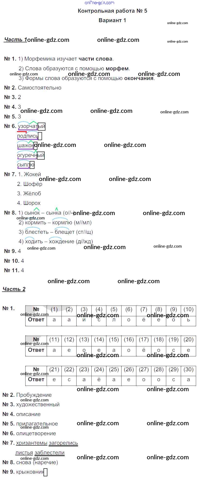 Готовые домашние задания по Русскому языку за 5 класс Рабочая тетрадь Гулеватая, Соловьева 2019 - КР-5. Варианты Контрольные работы 1
