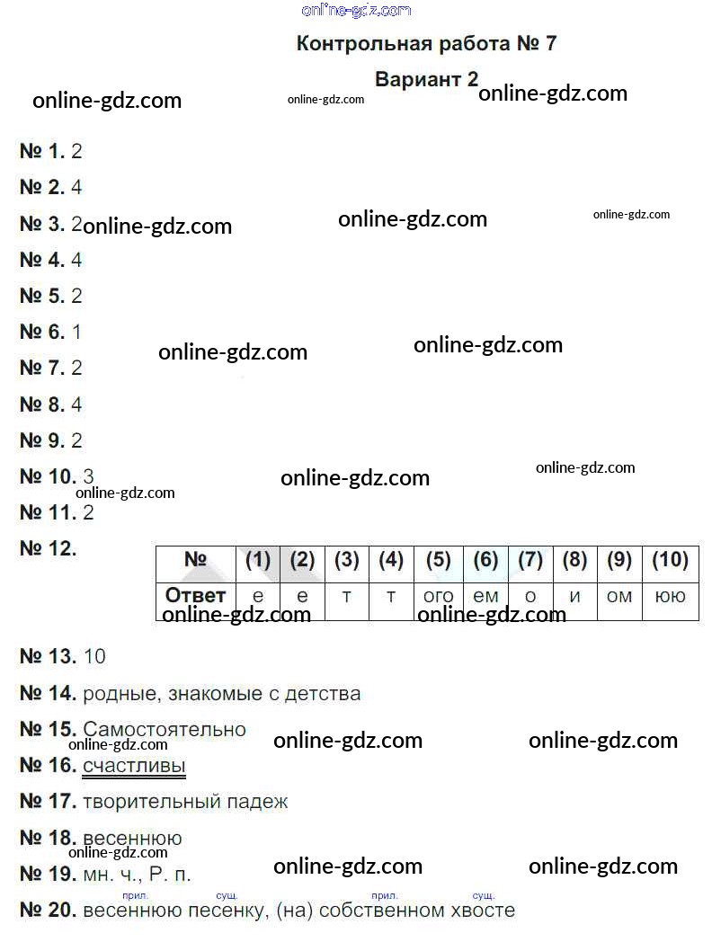 Готовые домашние задания по Русскому языку за 5 класс Рабочая тетрадь Гулеватая, Соловьева 2019 - КР-7. Варианты Контрольные работы 2