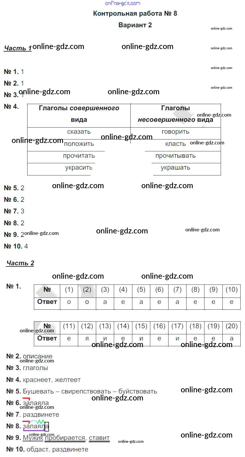 Готовые домашние задания по Русскому языку за 5 класс Рабочая тетрадь Гулеватая, Соловьева 2019 - КР-8. Варианты Контрольные работы 2
