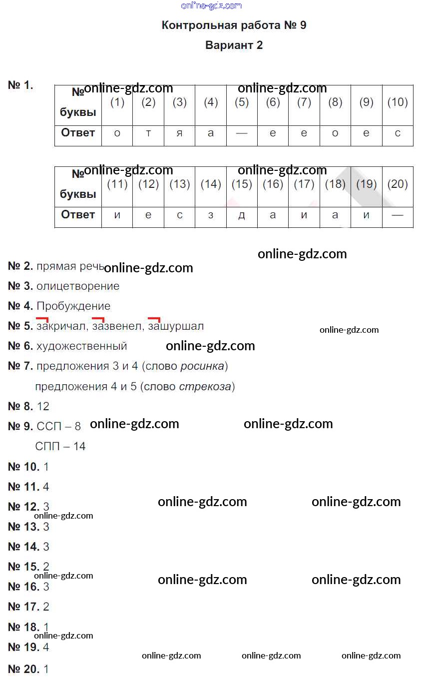 Готовые домашние задания по Русскому языку за 5 класс Рабочая тетрадь Гулеватая, Соловьева 2019 - КР-9. Варианты Контрольные работы 2