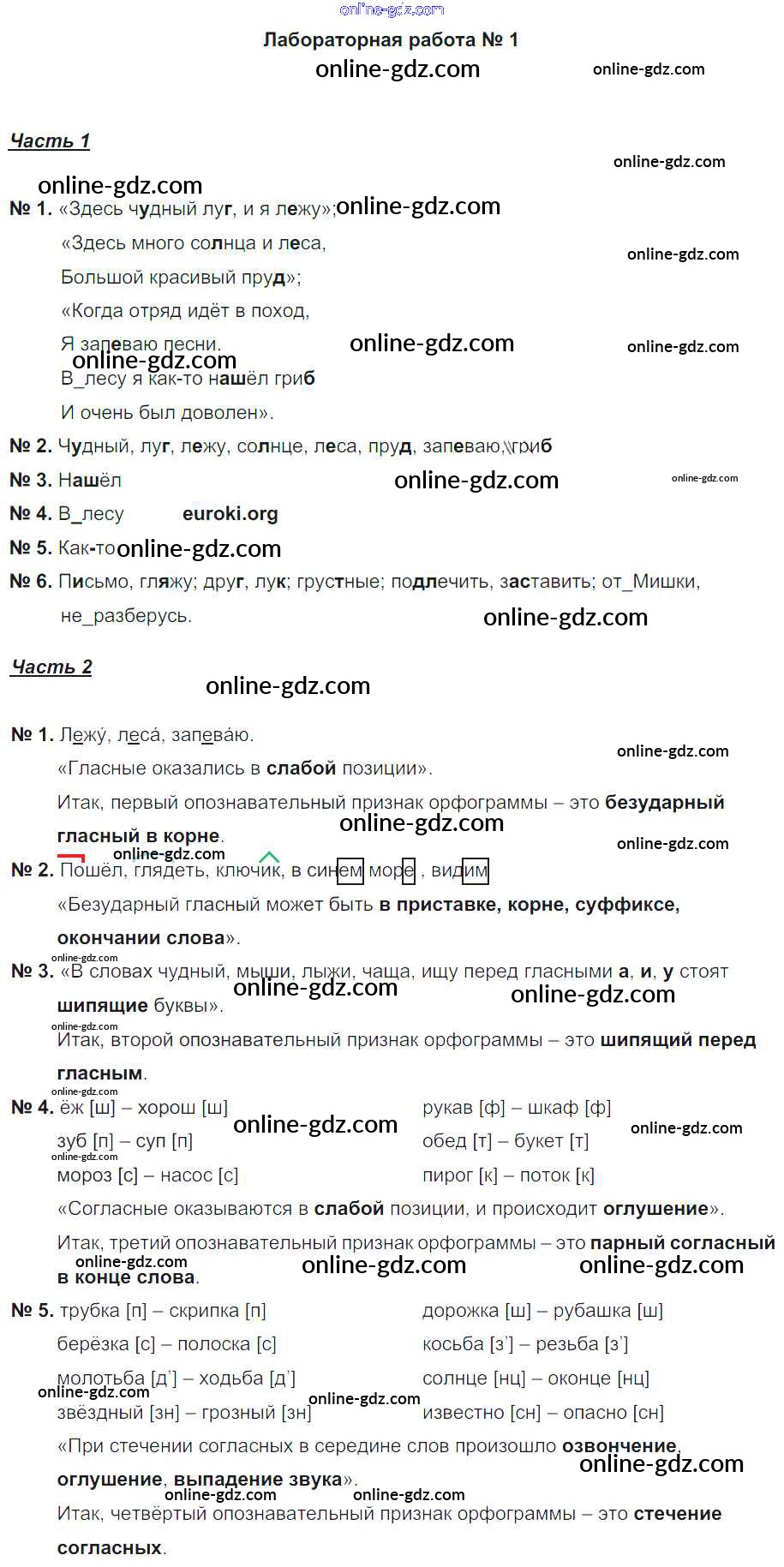 Готовые домашние задания по Русскому языку за 5 класс Рабочая тетрадь Гулеватая, Соловьева 2019 - 1 Лабораторные работы 2