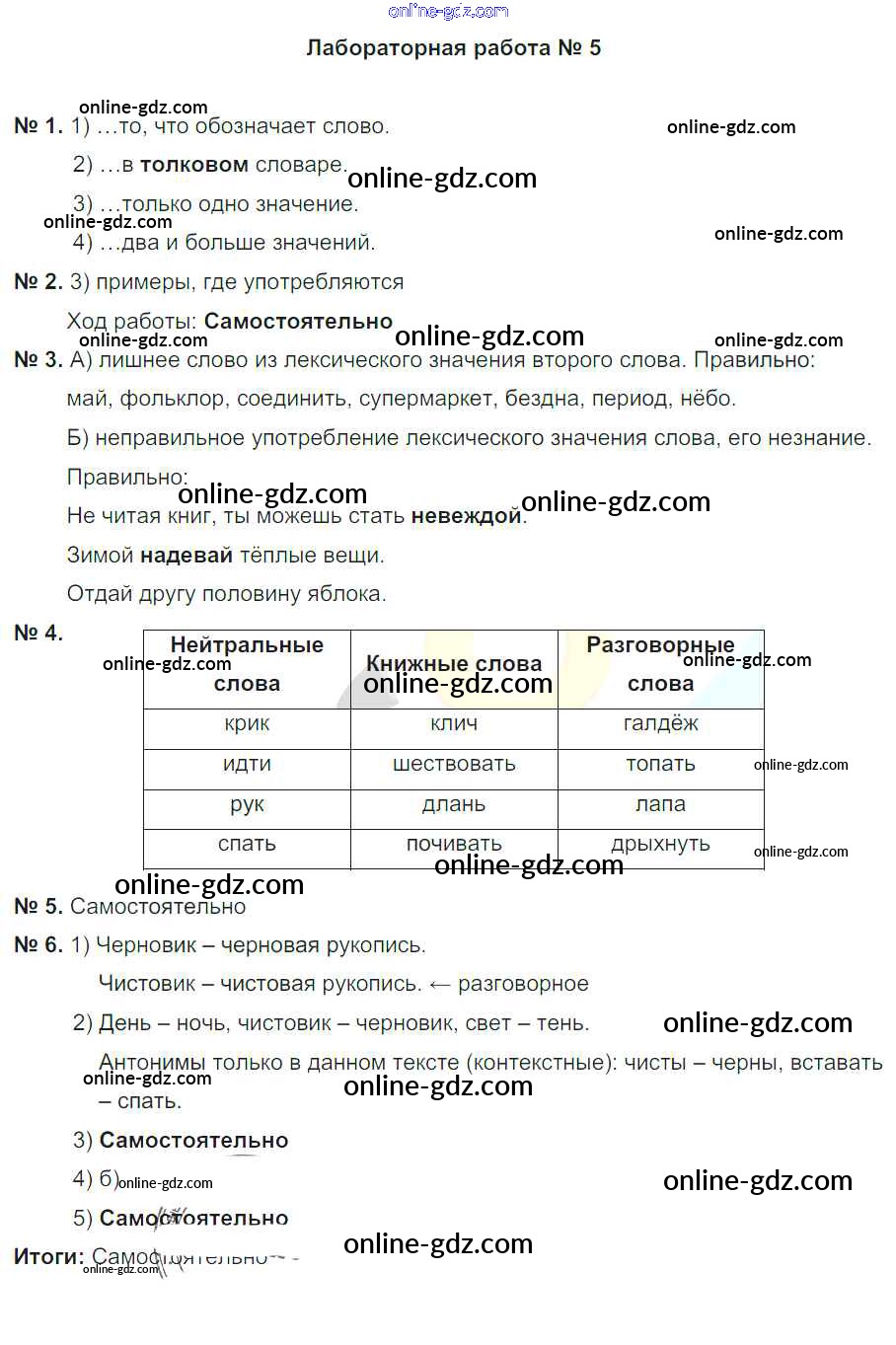 Готовые домашние задания по Русскому языку за 5 класс Рабочая тетрадь Гулеватая, Соловьева 2019 - 5 Лабораторные работы 1