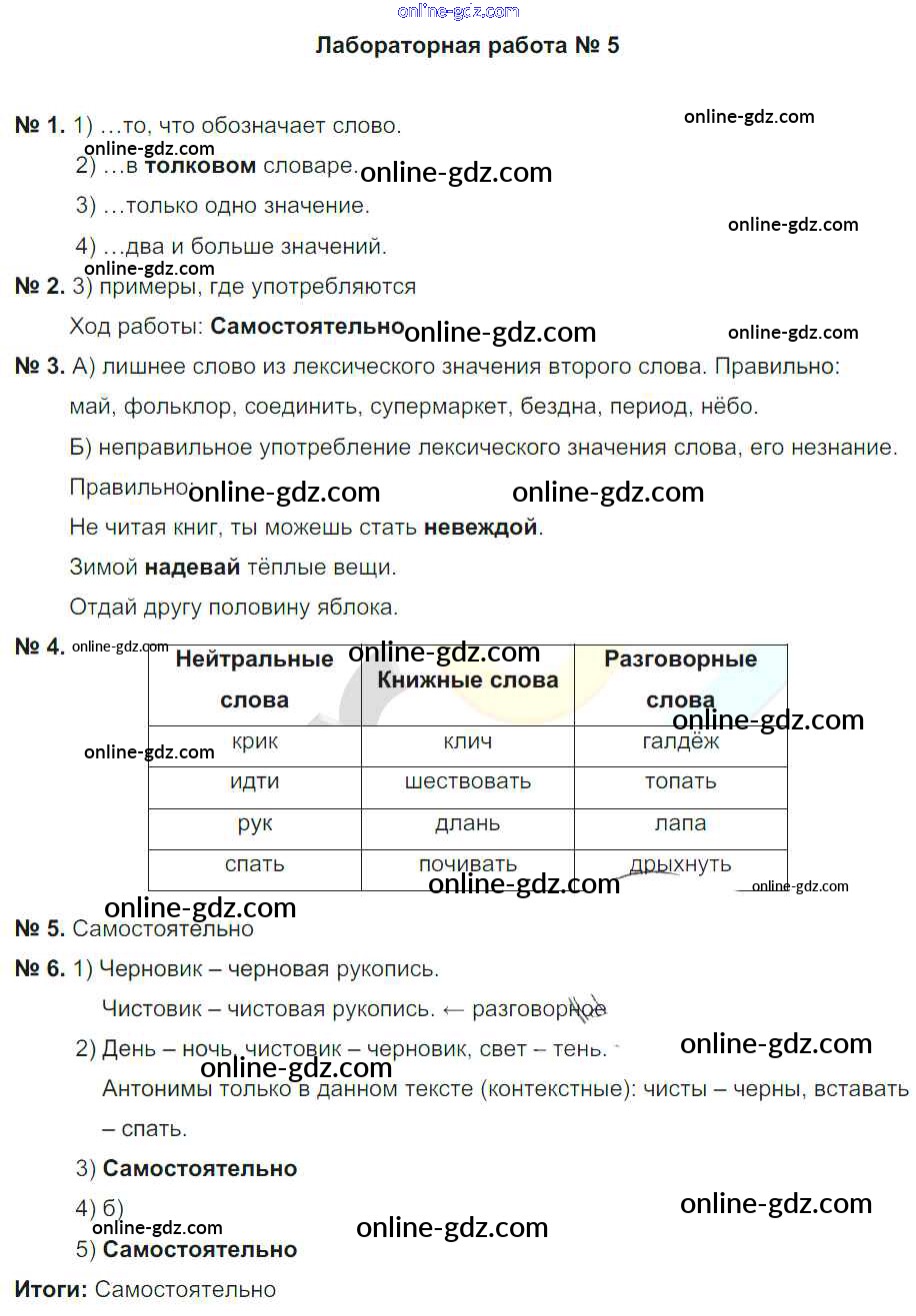Готовые домашние задания по Русскому языку за 5 класс Рабочая тетрадь Гулеватая, Соловьева 2019 - 5 Лабораторные работы 2