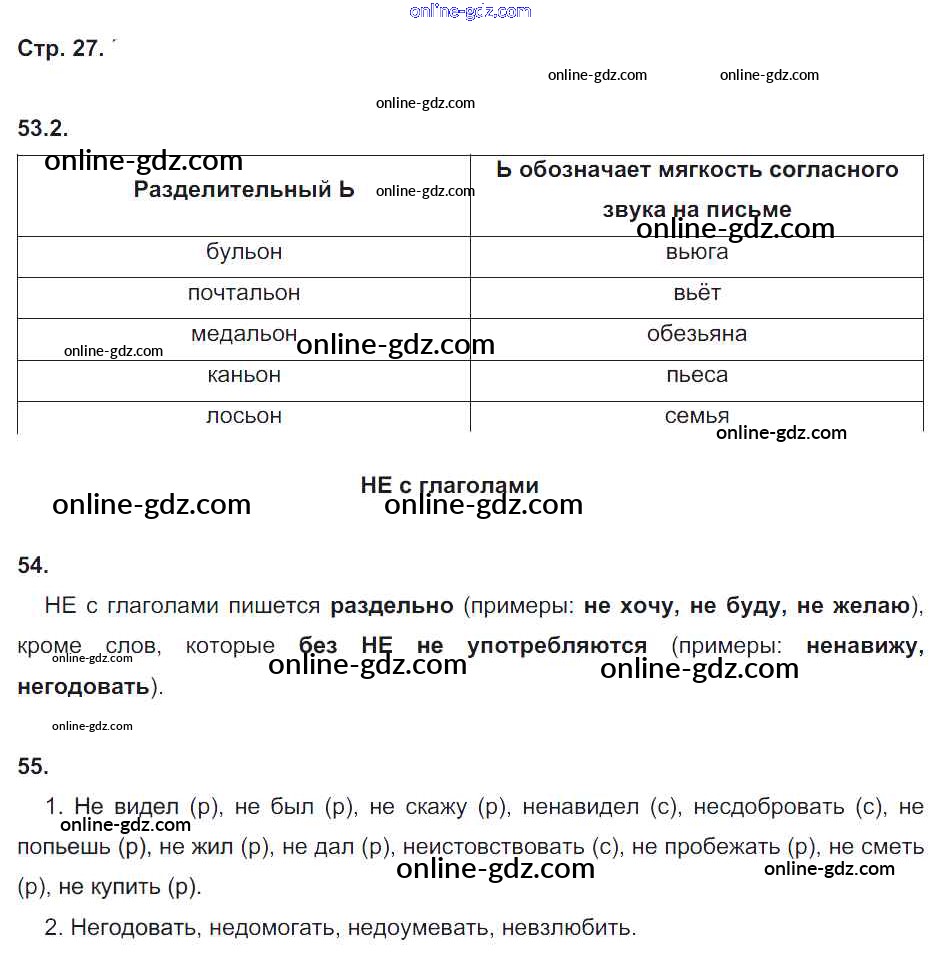 Готовые домашние задания по Русскому языку за 5 класс Рабочая тетрадь Львов УМК 2016 - Часть 1. Страницы 27