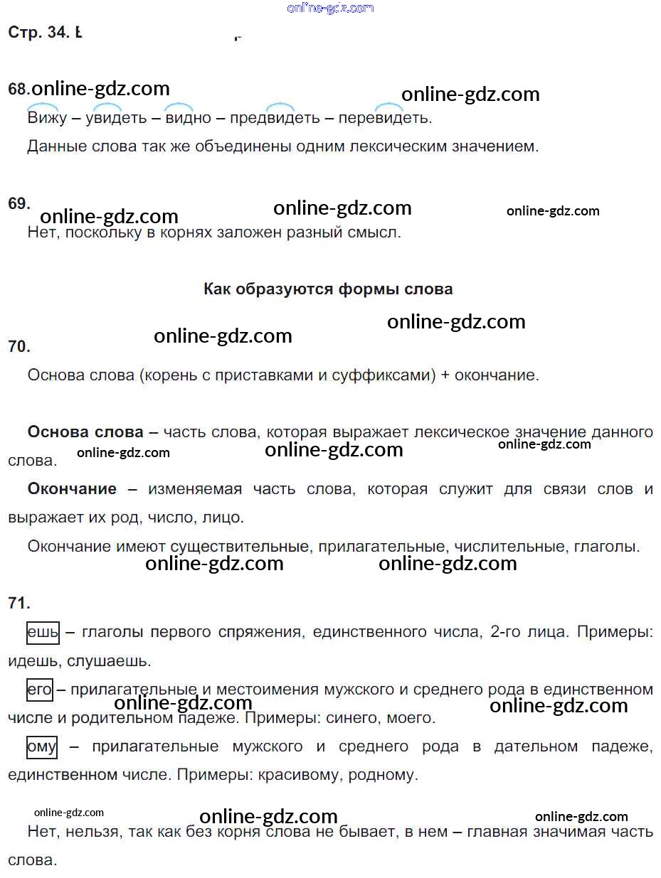 Готовые домашние задания по Русскому языку за 5 класс Рабочая тетрадь Львов УМК 2016 - Часть 1. Страницы 34