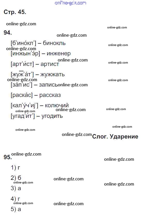 Готовые домашние задания по Русскому языку за 5 класс Рабочая тетрадь Львов УМК 2016 - Часть 1. Страницы 45