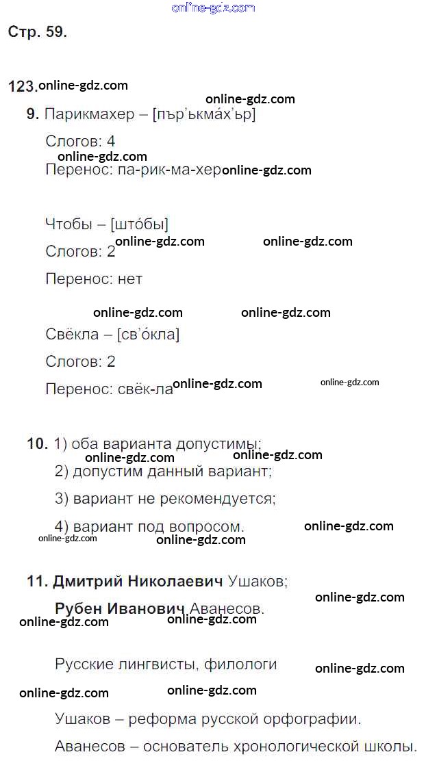 Готовые домашние задания по Русскому языку за 5 класс Рабочая тетрадь Львов УМК 2016 - Часть 1. Страницы 59