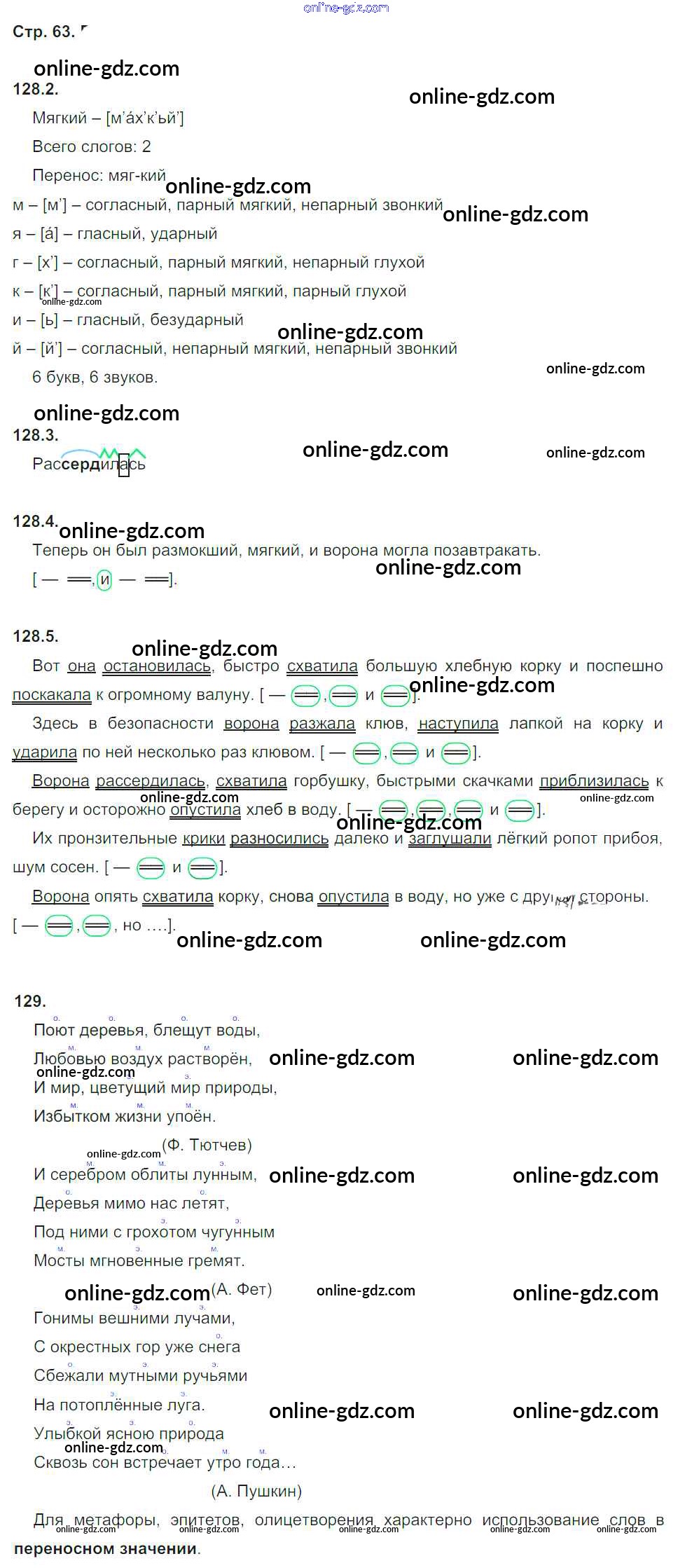 Готовые домашние задания по Русскому языку за 5 класс Рабочая тетрадь Львов УМК 2016 - Часть 1. Страницы 63