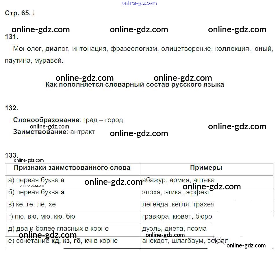 Готовые домашние задания по Русскому языку за 5 класс Рабочая тетрадь Львов УМК 2016 - Часть 1. Страницы 65