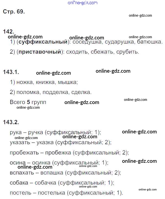Готовые домашние задания по Русскому языку за 5 класс Рабочая тетрадь Львов УМК 2016 - Часть 1. Страницы 69