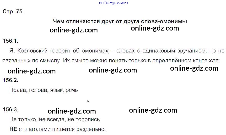 Готовые домашние задания по Русскому языку за 5 класс Рабочая тетрадь Львов УМК 2016 - Часть 1. Страницы 75