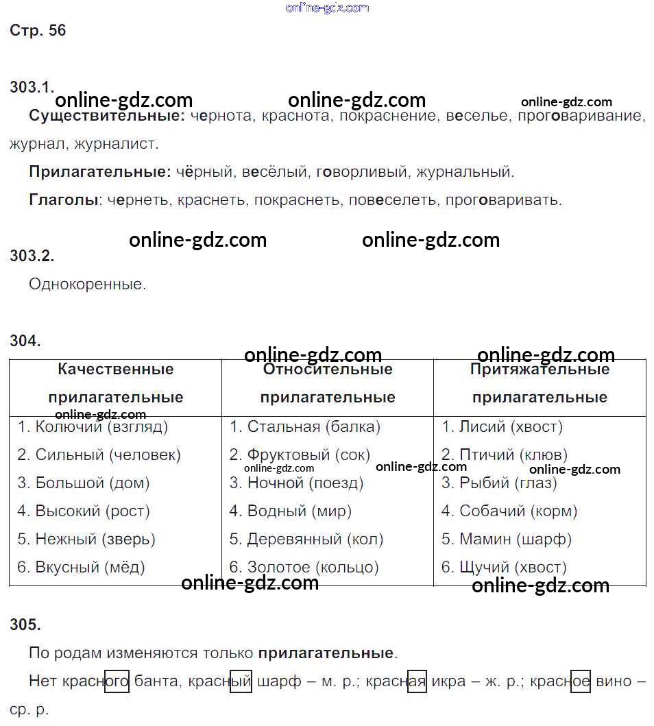 Готовые домашние задания по Русскому языку за 5 класс Рабочая тетрадь Львов УМК 2016 - Часть 2. Страницы 56