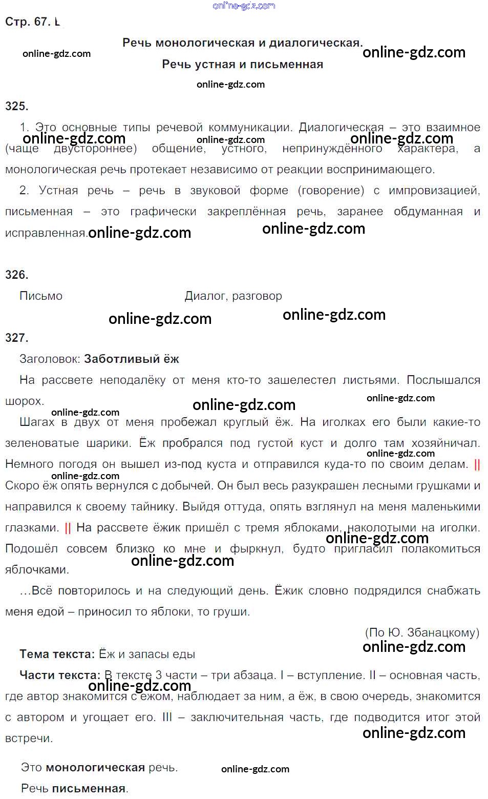 Готовые домашние задания по Русскому языку за 5 класс Рабочая тетрадь Львов УМК 2016 - Часть 2. Страницы 67