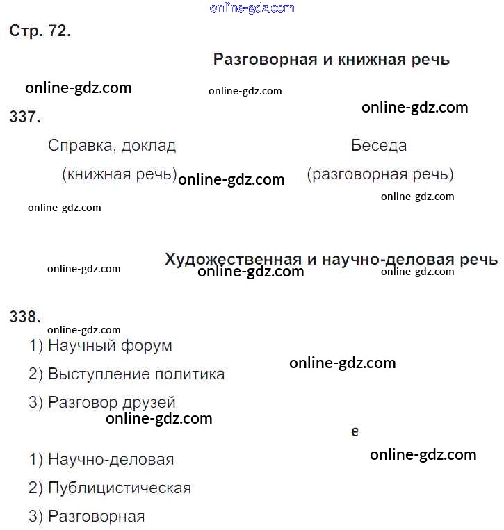 Готовые домашние задания по Русскому языку за 5 класс Рабочая тетрадь Львов УМК 2016 - Часть 2. Страницы 72