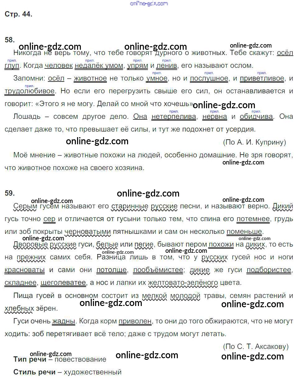 Готовые домашние задания по Русскому языку за 5 класс Рабочая тетрадь Тростенцова, Дейкина УМК 2015 - Страницы 44