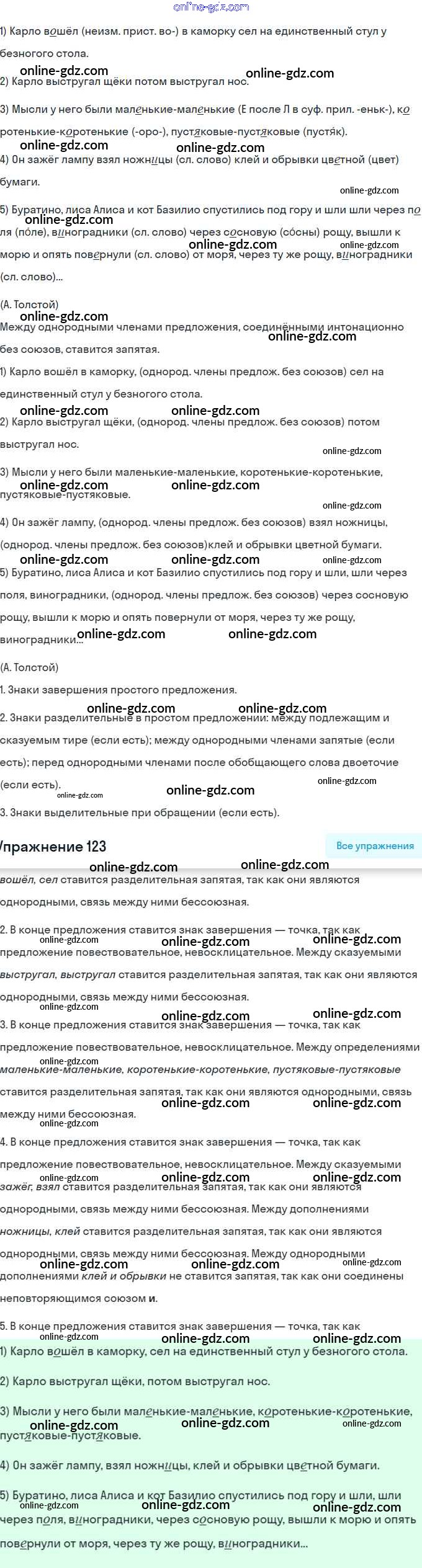 Готовые домашние задания по Русскому языку за 5 класс Рабочая тетрадь Янченко, Латфуллина 2019 - Часть 1. Упражнения 123