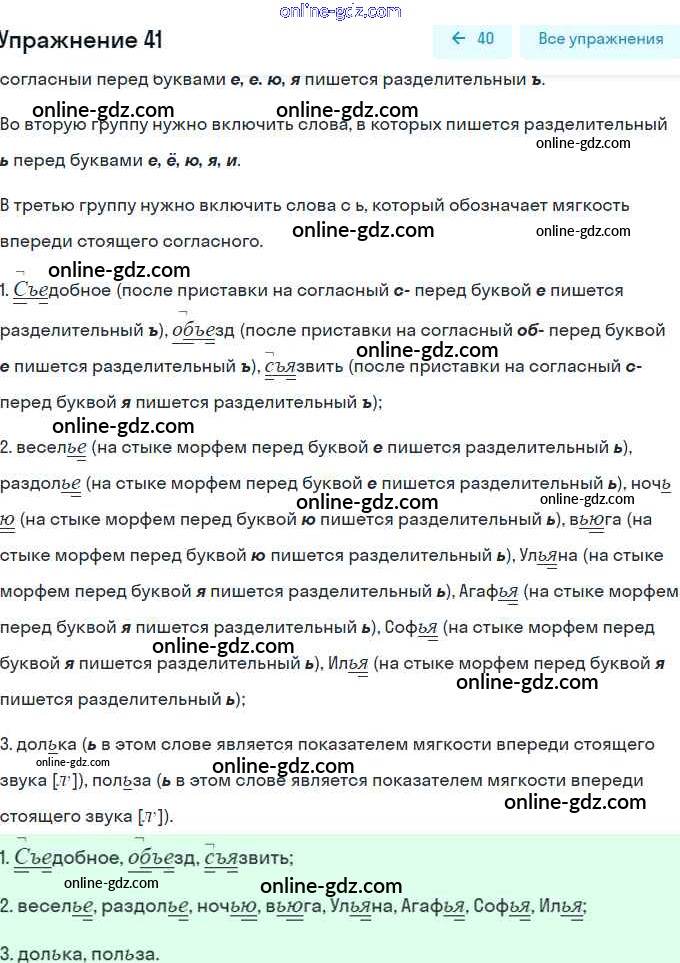 Готовые домашние задания по Русскому языку за 5 класс Рабочая тетрадь Янченко, Латфуллина 2019 - Часть 1. Упражнения 41