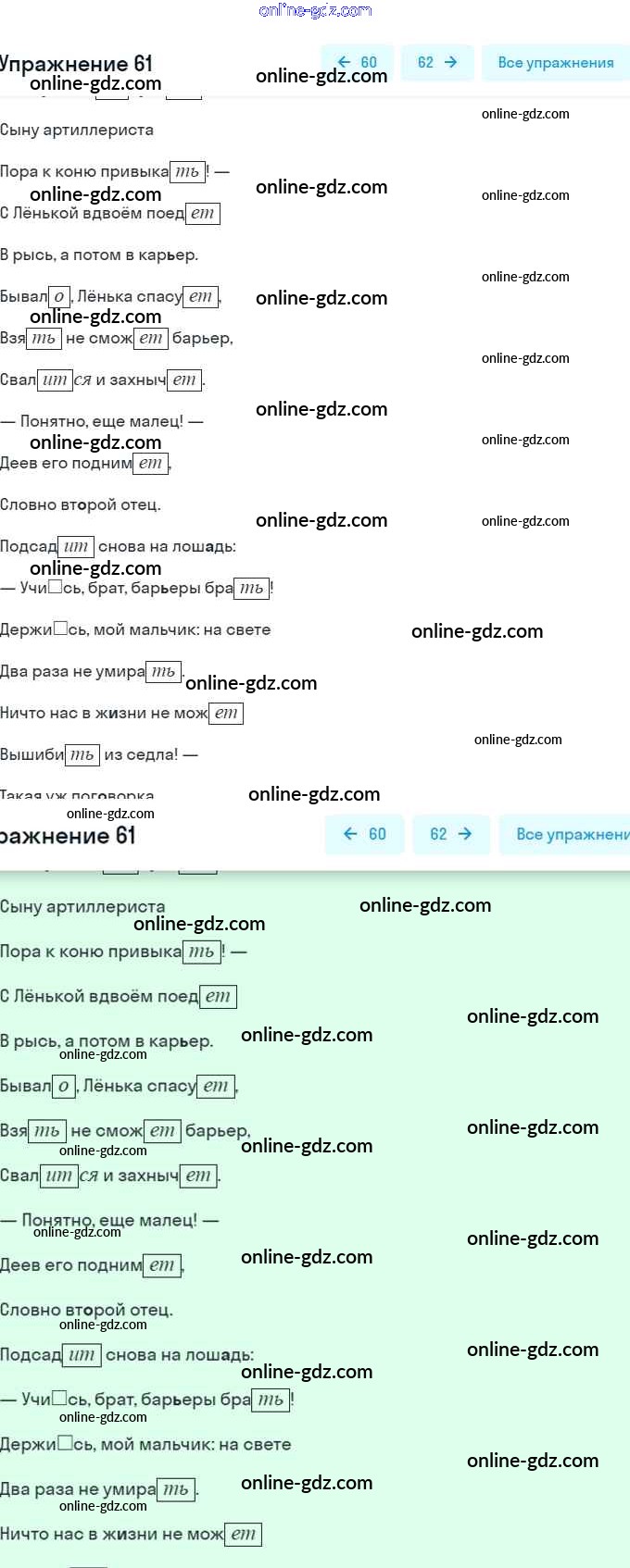 Готовые домашние задания по Русскому языку за 5 класс Рабочая тетрадь Янченко, Латфуллина 2019 - Часть 1. Упражнения 61