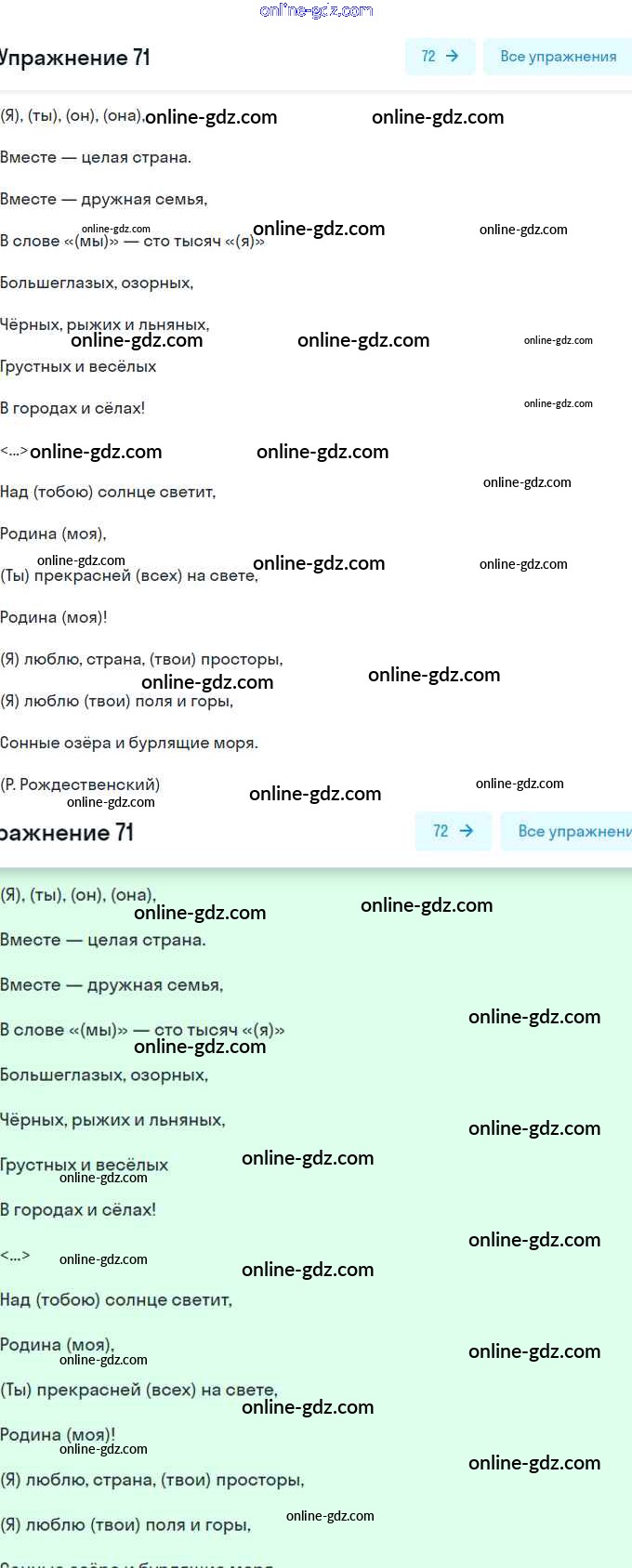 Готовые домашние задания по Русскому языку за 5 класс Рабочая тетрадь Янченко, Латфуллина 2019 - Часть 1. Упражнения 71