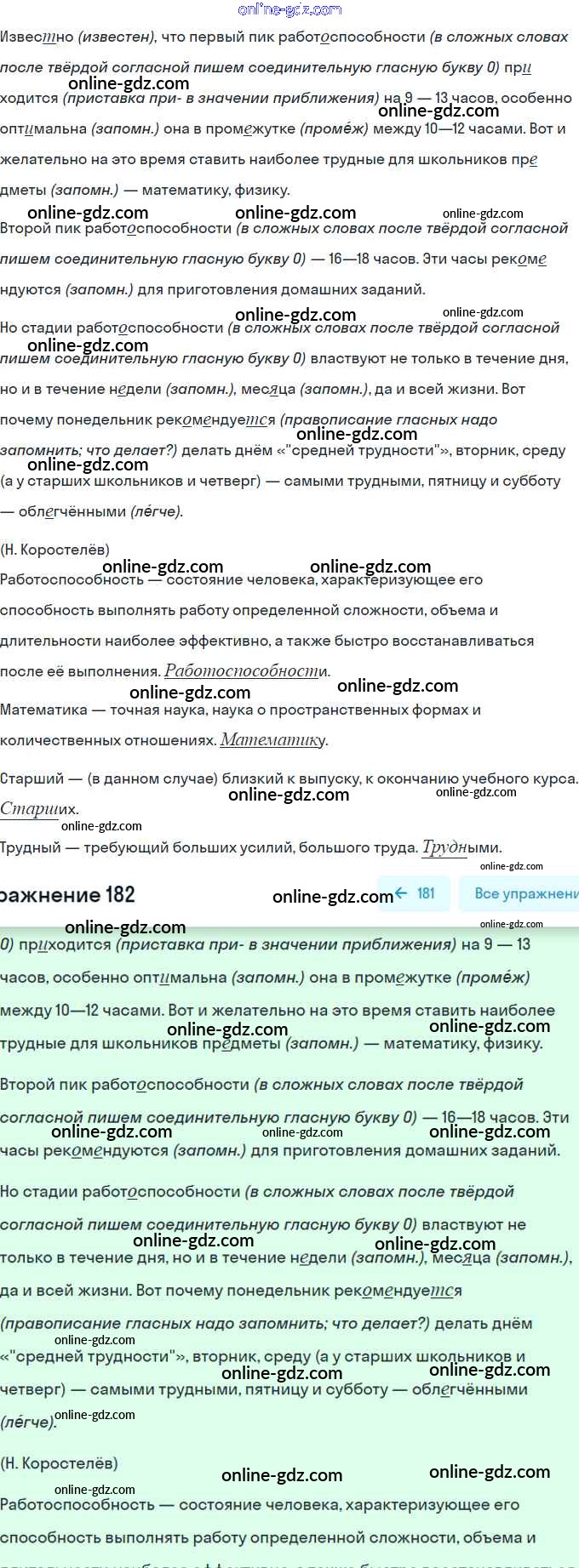 Готовые домашние задания по Русскому языку за 5 класс Рабочая тетрадь Янченко, Латфуллина 2019 - Часть 2. Упражнения 182