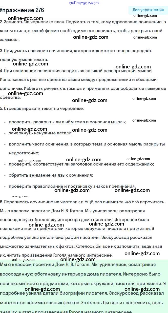 Готовые домашние задания по Русскому языку за 5 класс Рабочая тетрадь Янченко, Латфуллина 2019 - Часть 2. Упражнения 276