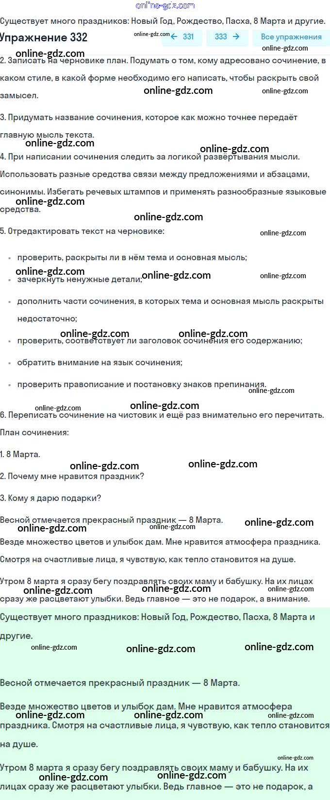 Готовые домашние задания по Русскому языку за 5 класс Рабочая тетрадь Янченко, Латфуллина 2019 - Часть 2. Упражнения 332